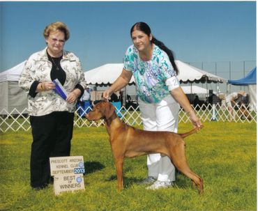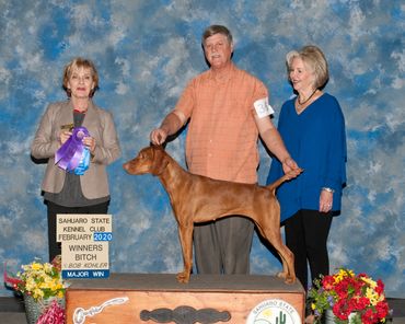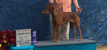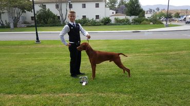 We also bred our Vizslas, Carson and Clark. Clark is the last in the Taunee line we have. This is the Taunee line that traces back to HOF CH Taunee's Loki Santana, a.k.a., "Bear", only the first Vizsla to take a group placement at the Garden.
